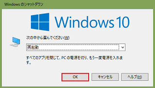 「次の中から選んでください」ボックスから「再起動」をクリックする。