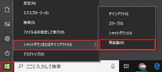 スタートボタン(ウィンドウズマーク)を右クリックして再起動するには、以下の操作を行います。