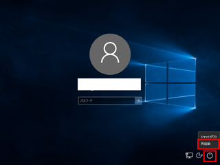2.画面右下の「電源マーク」(シャットダウン)をクリックし、表示された一覧から「再起動」をクリックする。