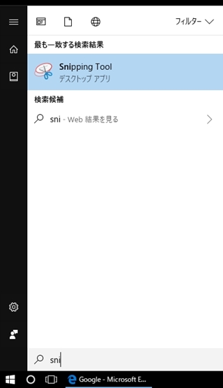 この場合はショートカットキーではなく、Windows10に入っている標準ソフト「Snipping Tool」を使用します。