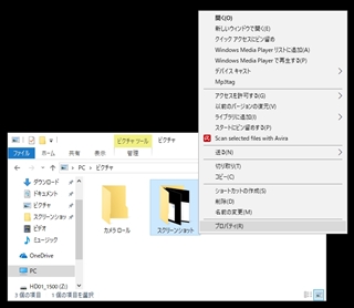 スクリーンショットのフォルダを右クリックし、「プロパティ」をクリック