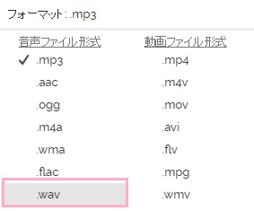 - 音声抽出に対応しているファイル形式はwav・mp3・flac・aac