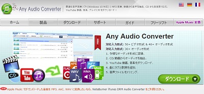 「Any Audio Converter」はYoutubeやニコニコ動画などの動画サイトから動画をダウンロードして、mp3・wma・wav・flac・aac・oggなどの形式で音声を抽出して保存することのできるフリーソフトです。