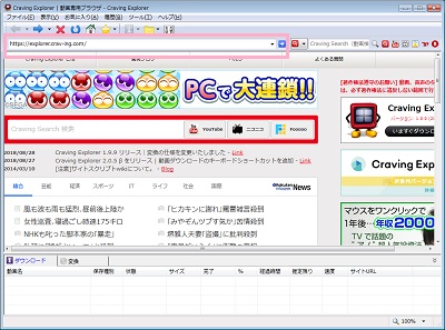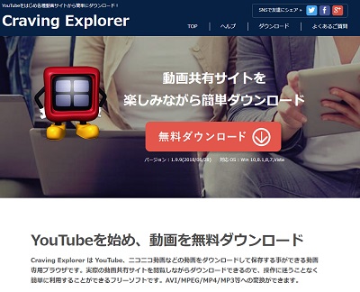 「Craving Explorer」は、ブラウザのような使い勝手で動画をダウンロードして音声抽出できるフリーソフトです。Youtubeやニコニコ動画を含めた各種動画サイトに対応しています。