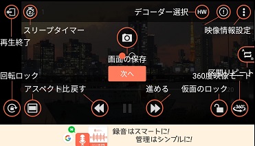 また、音符のボタンをタップすると再生に使用するデコーダーを選択できるので、動画の再生が重い時にデコーダーを変更してみましょう。