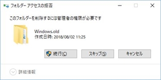 windows.oldはコマンドでの削除は消えない?できないの?