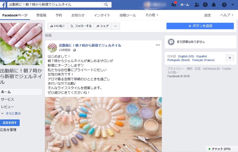 たとえば、忙しくてネイルサロンに通えない女性をターゲットに早朝から営業しているネイルサロンがFacebookページを作成するとします。