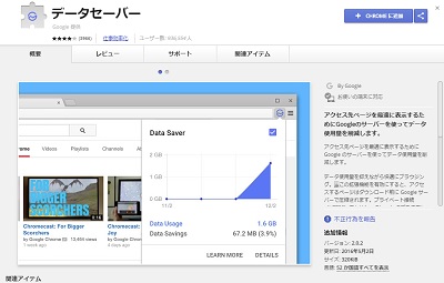 PC版Chromeブラウザにはデフォルトでデータセーバーが搭載されておらず、拡張期能をインストールする必要があります。