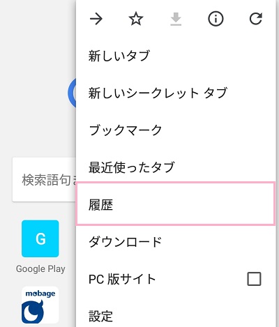 右上のメニューボタンをタップしてから「履歴」を開きます。