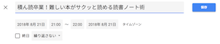 すると、Googleカレンダーの予定の登録ページが開き時間帯とタイトルが入力された状態となっています。あとはボタンをクリックすると、自分のGoogleカレンダーに予定が登録されます。
