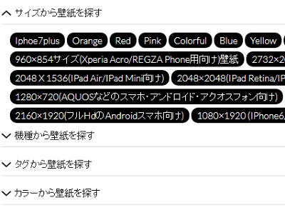 サイズ・機種・タグ・カラーごとに壁紙を探せるのですが、iPhone用の壁紙も用意されており混ざってしまうので「サイズから壁紙を探す」で探すことをおすすめします。