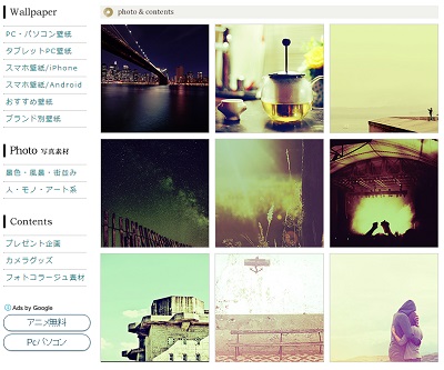 ブログ形式のサイトで、主に写真や風景・イラスト・たまにアニメ系の壁紙を配布しています。かっこいいものや雰囲気のある壁紙が多いため、スタイリッシュな壁紙を使いたい場合におすすめです。
