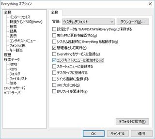 1つ目は、エクスプローラーなどで指定したフォルダを簡単にEverythingで検索できるようにする設定です。