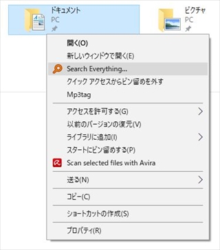 これにより、エクスプローラーの右クリック時の項目が拡張され、Everythingでのファイル検索を選べるようになります。