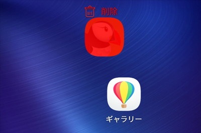 画面上部に「削除」と「アンインストール」が表示される機種の場合、「アンインストール」にアプリアイコンを持っていくことで削除することができます。