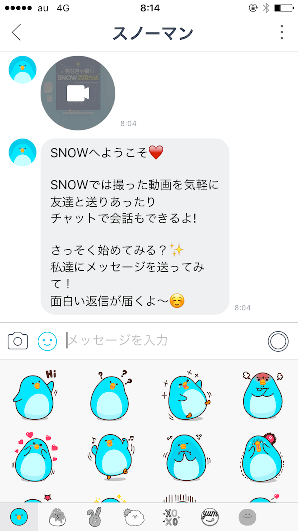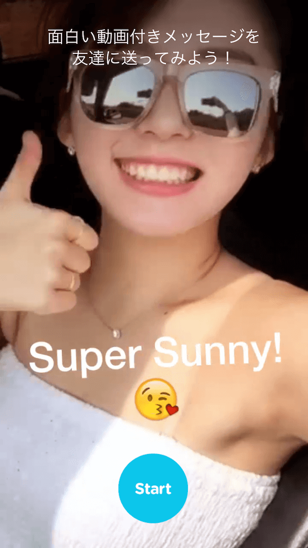 面白い動画つきメッセージを友達に送ってみよう!StartボタンをタップすることでSNOWを利用できるようになります。