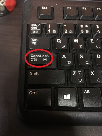 写真は例ですが、赤丸で示した箇所で、Caps Lockの確認ができます。