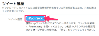 リンク先に飛ぶと、ツイート履歴のダウンロードボタンがありますので、こちらをクリックします。