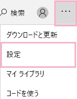 Microsoftストアウィンドウの右上のメニューボタンをクリックしてメニューを開き、「設定」をクリックしましょう。