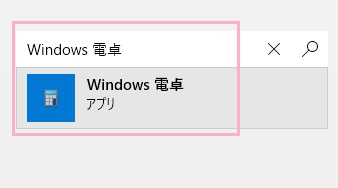 電卓がインストールされていれば、検索結果に表示されます。電卓の場所