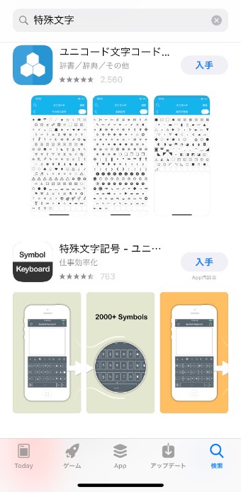 使いやすいアプリだと、『ユニコード』や『特殊文字記号』というものがおすすめです。どちらも、iPhone・androidともにダウンロードすることができますので、App Store・Google Playで検索してみてくださいね!