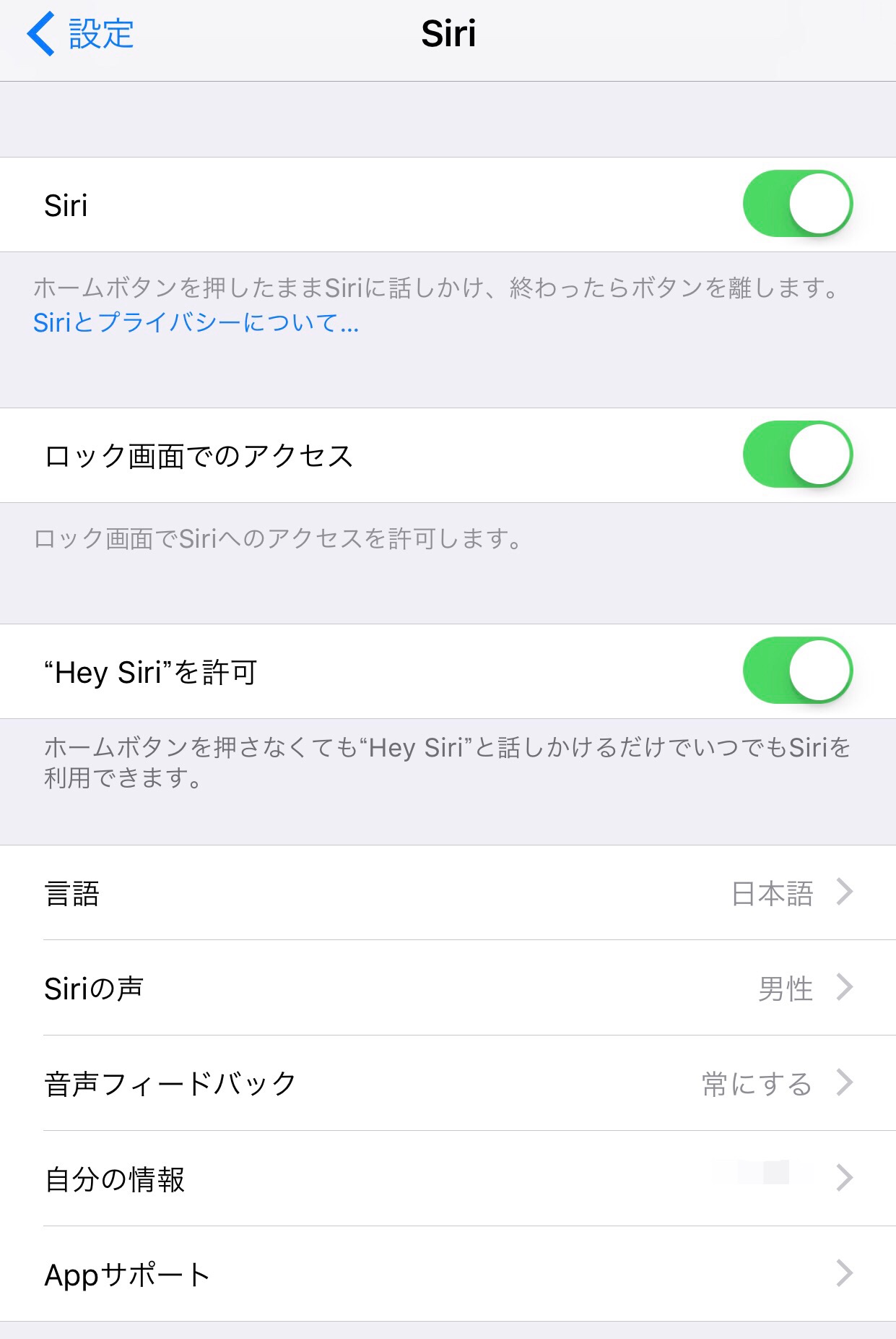 設定アプリを起動し、Siriのメニューを選択