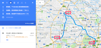 これで入力枠が増えますので、PCの場合と同じように経由地を入力し経路を表示します。