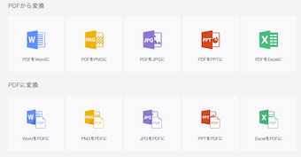 変換できる形式は、word、png、jpg、ppt、excelであれば、PDFから変換⇔PDFへ変換ができます。変換もすぐにできるので、ちょっと編集したい時にも、簡単に利用することができますね。