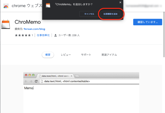 ChroMemoはChromeウェブストアから追加できます。