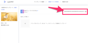 動画持続時間/音楽持続時間のボタンをクリックすると、BGMの長さを変更することができますよ。