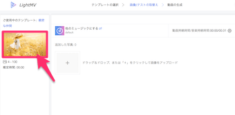 テンプレートを選択すると、アップロード画面となります。