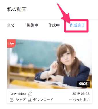 生成が完了すると、自動的に私の動画画面に移動します。