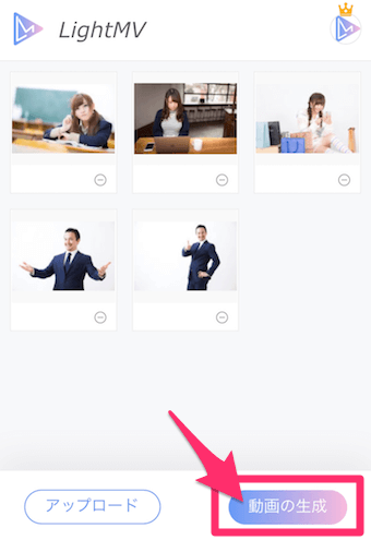 選択が完了したら、動画の生成をタップします。