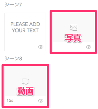 その横にある写真/動画のシーンで表示される文字となります。