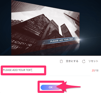 そのシーンに入力したい文字を入力し、OKをクリックします。