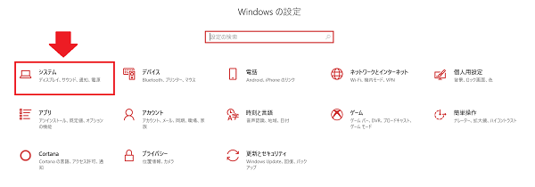 設定画面が開いたら、左上の「システム」をクリックしましょう。