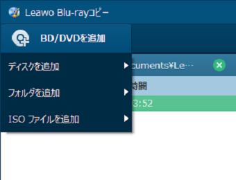 Blu-rayコピーのトップ画面左上「BD/DVDを追加」ボタンから、コピーしたいBlu-rayディスクまたはブルーレイフォルダ、ISOファイルのいずれかを選択しましょう。