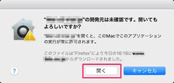 「開発元が未確認のため開けません」という表示になるため、次のステップに移ります。