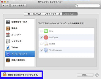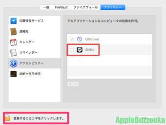 「Shiftit」を選択し、「変更するにはカギをクリックします」を押しましょう。