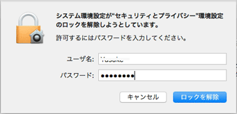 ユーザー名とパスワードを求められたら入力し、「ロックを解除」をクリックします。