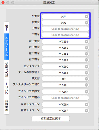 ⌘と矢印、「Click to record shortct」と変更した例です。