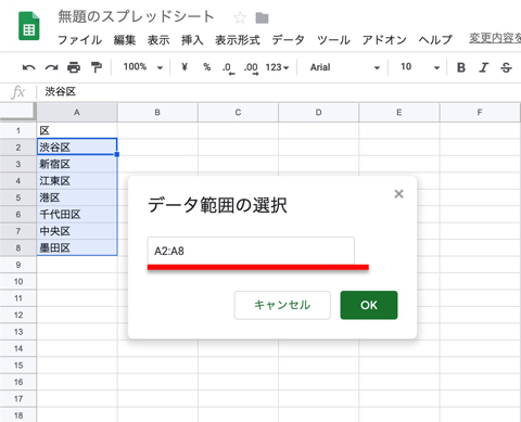 「セル範囲」で正しいセルを選択できていることを確認します。