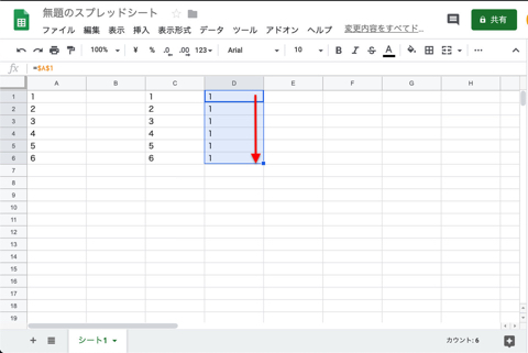 絶対参照を記載したセルを下にドラッグします。