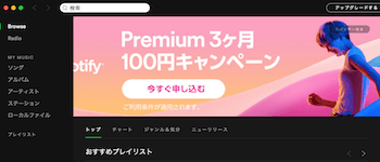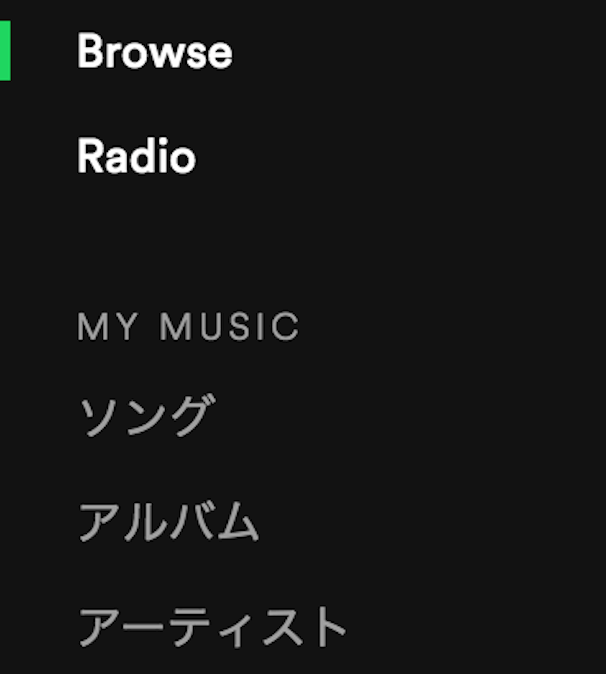 次にSpotifyのメインページの左側のメニューについてそれぞれどういう事ができるかご紹介します。