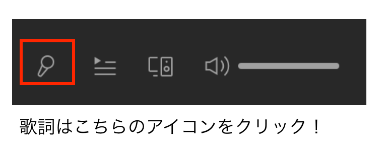歌詞については曲の再生中のプレイヤーの「マイク」のアイコンをタップすると表示されます。