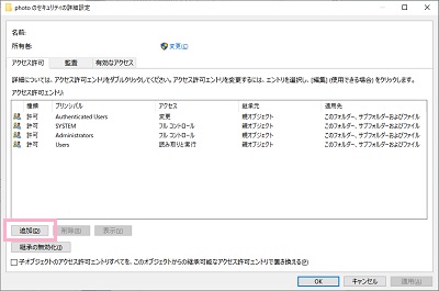 アクセス権の所有者情報がおかしくなっていたり、勝手に変更されて解除されている場合があるため、アクセス権を与えてアクセス許可状態にする必要があります。