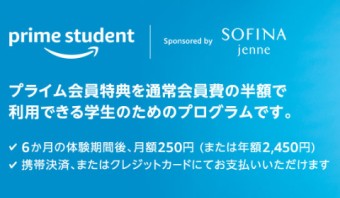 学生ユーザーのAmazonプライム会員には6ヵ月の体験期間を試すことも可能です。ぜひ気になる方はお申込みください。