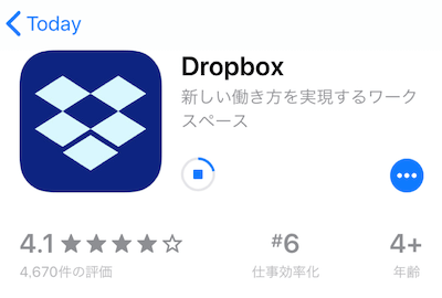 上記のサイトからApp Storeのインストールリンクに飛び、Dropboxのアプリをインストールします。
