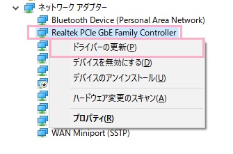 ネットワークドライバが不安定なことで不具合が発生して、その結果回線速度が落ちている場合があります。この場合はネットワークドライバを更新してみましょう。