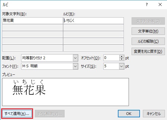 ルビの変更で「すべて変更」を押します。